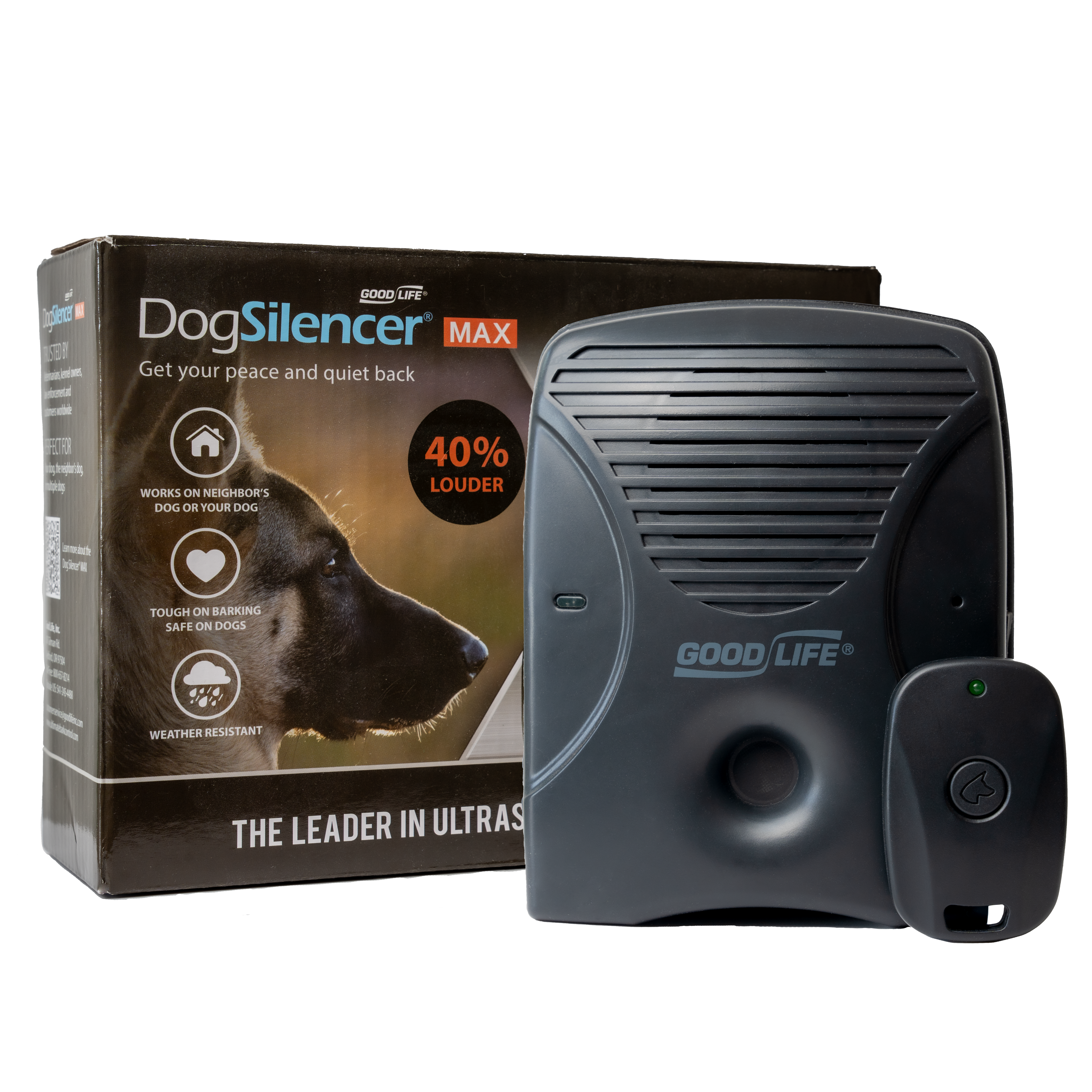 Need more power or distance? The Dog Silencer® MAX is our premium long-range bark control device, built for stubborn barkers and larger outdoor spaces.
