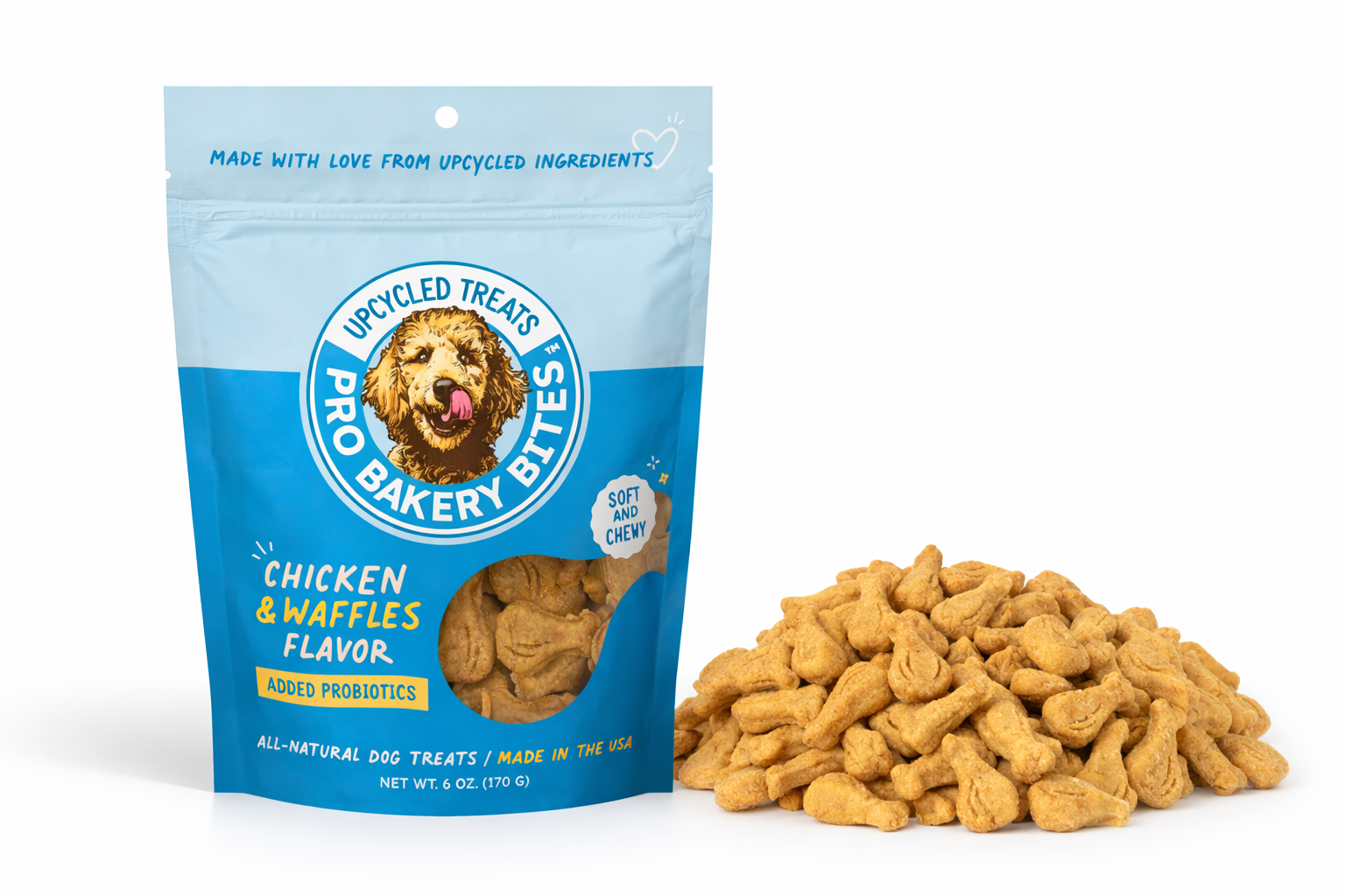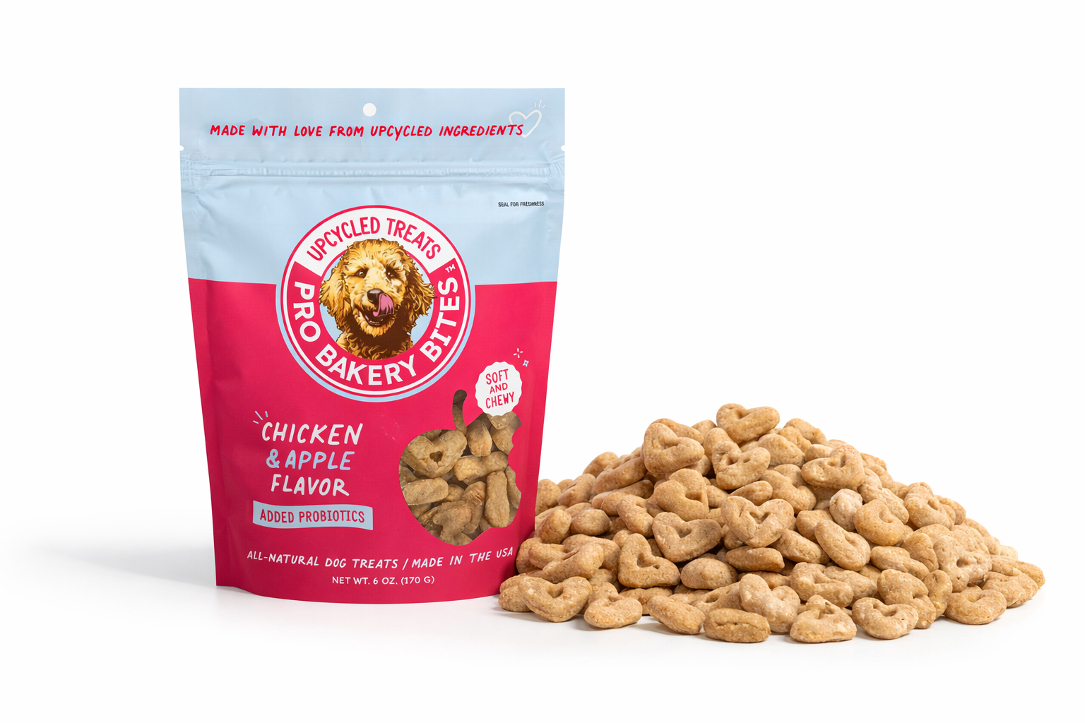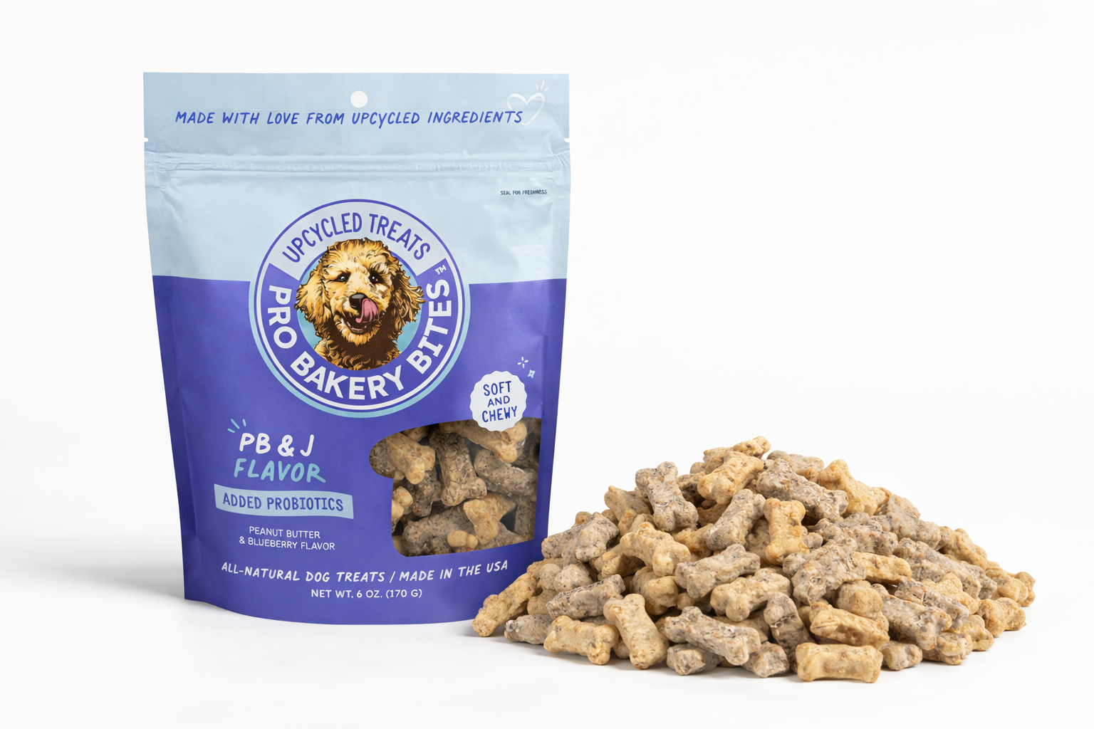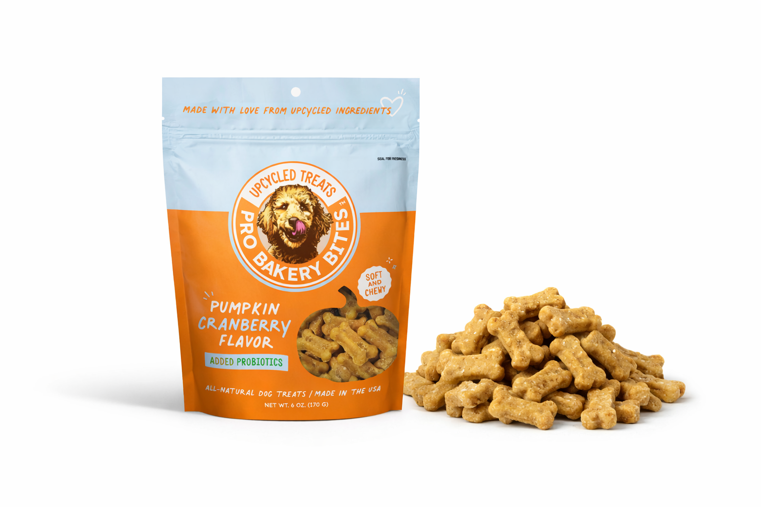 Bakery-fresh treats made with upcycled ingredients and packed with gut-friendly probiotics. Each soft chewy bite delivers perfect nutrition for daily treating.