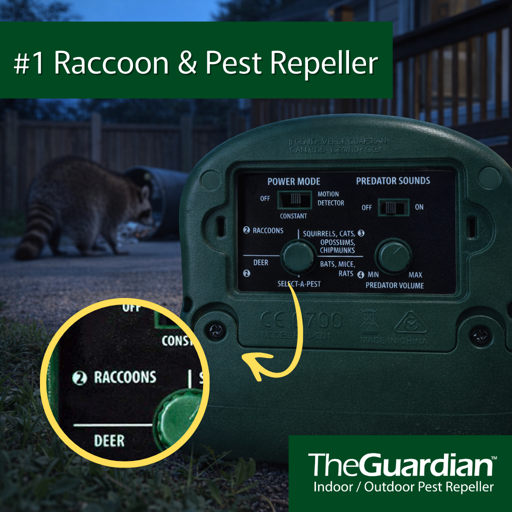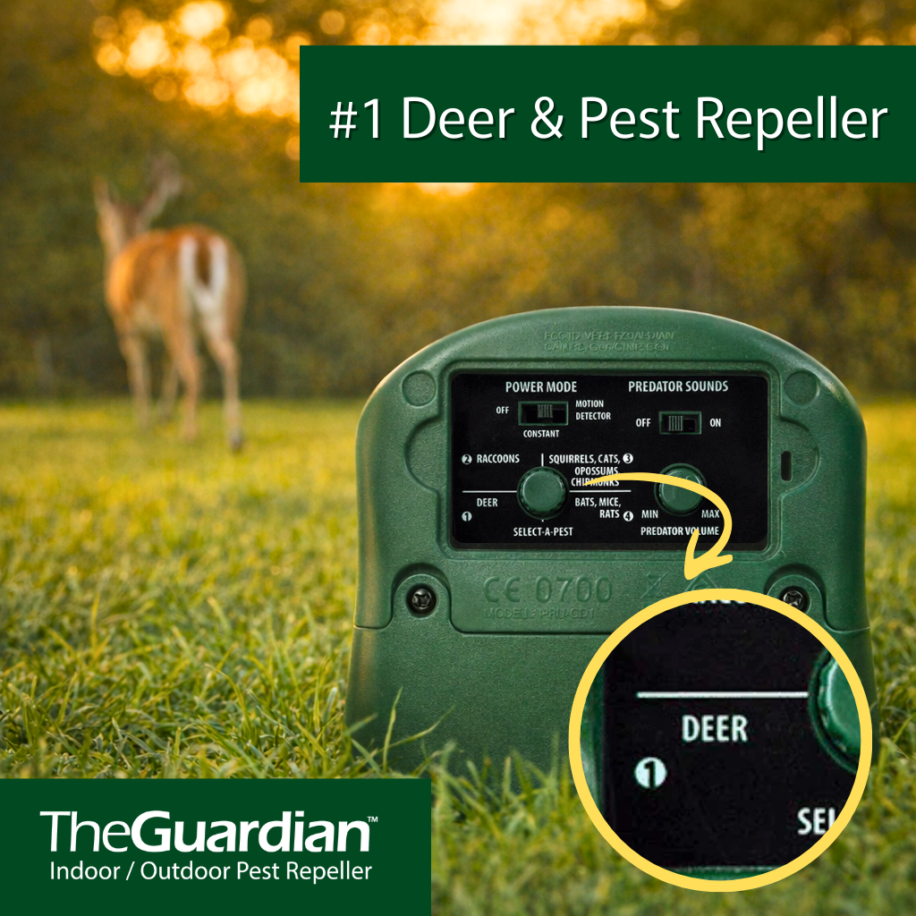 The Guardian™ helps deter nuisance animals like cats, bats, mice, rats, rodents, skunks, squirrels, raccoons, possums, deer, and more.